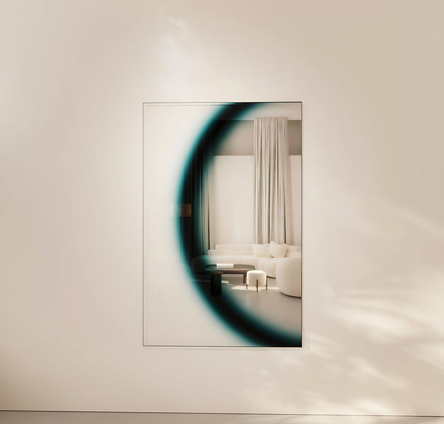 'Glimpse' is an object that captures a moment within a larger context, a fragment of a bigger drawing. Inspired by cosmic phenomena, the mirror portrays an arc resembling a circumference, hinting at the presence of a broader circular form.